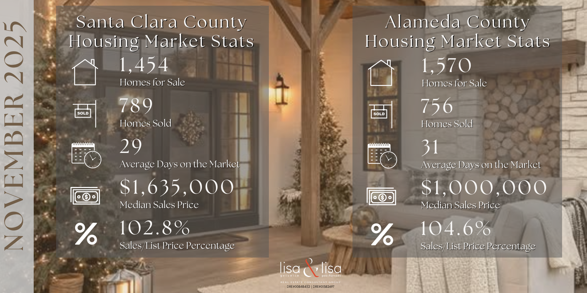 Market Statistics Days on MarketInfogram Median Sale PriceInfogram Sale Price to List Price RatioInfogram CONTACT LISA & LISA REAL ESTATE CONSULTANT GROUP Contact Us Name * First Last * Last Email * Subject * Message * Captcha Submit If you are human, leave this field blank. Search for: Recent Posts Season’s Best! Where to Find Christmas Trees, Cookies Recipes & Holiday Events! Back-to-School Organization Spring Home Maintenance Checklist Spring 2025 Home Maintenance Checklist: Essential Tips for a Safe and Sound House 25 Can’t-Go-Wrong Secret Santa Gifts Everyone Will Want